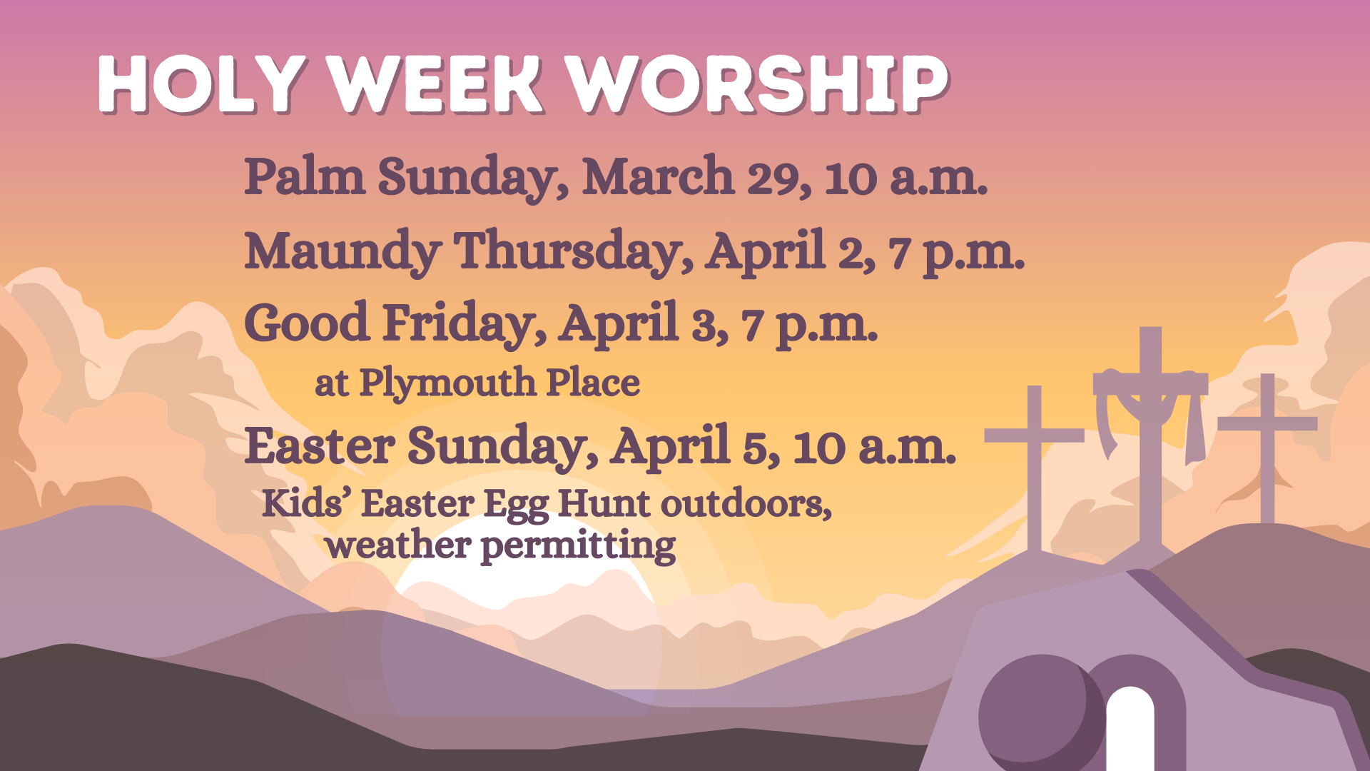 Sunday Worship is held at 10:00 a.m.
